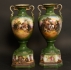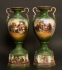 18/1900-tal, ett par, urnor med socklar i porslin, dekor av landskap, samt figurscener, höjd inkl sockel 64 cm, åldersrelaterat slitage, en urna med lagning.
