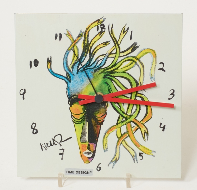 Nyare tillverkning, med dekor av ansikte, 20 x 20 cm, smärre bruksslitage, batteridrift, funktion ej testad.