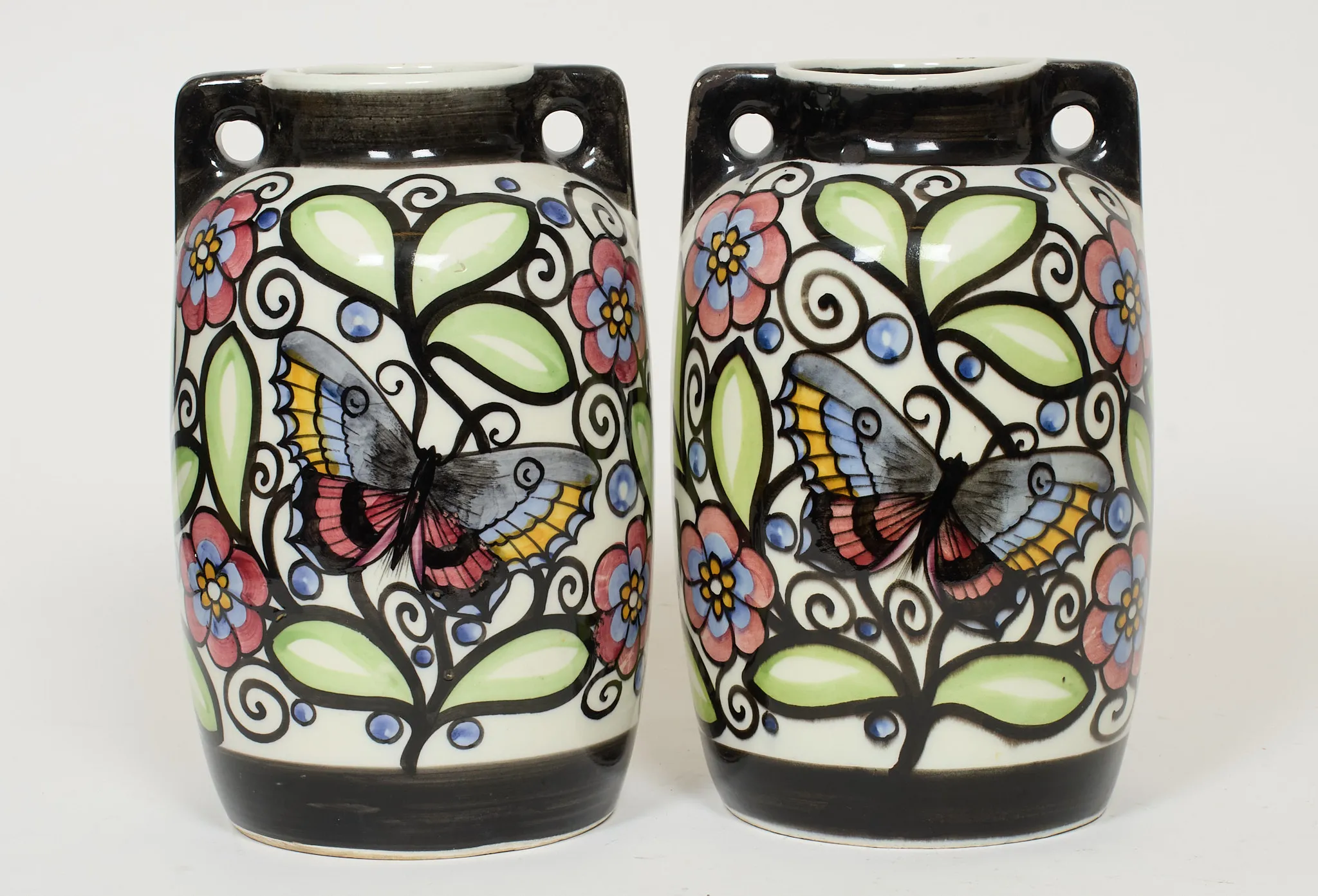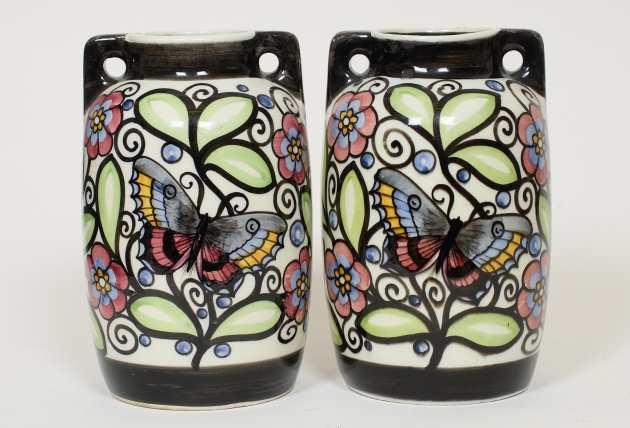 Ett par, höjd 27 cm. Bruksslitage, glasyrbortfall