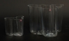 Alvar Aalto, 2 st, klarglas, båda etikettmärkta, höjd 10 - 16 cm, fint skick, men stora vas med minimalt nagg i överkant.