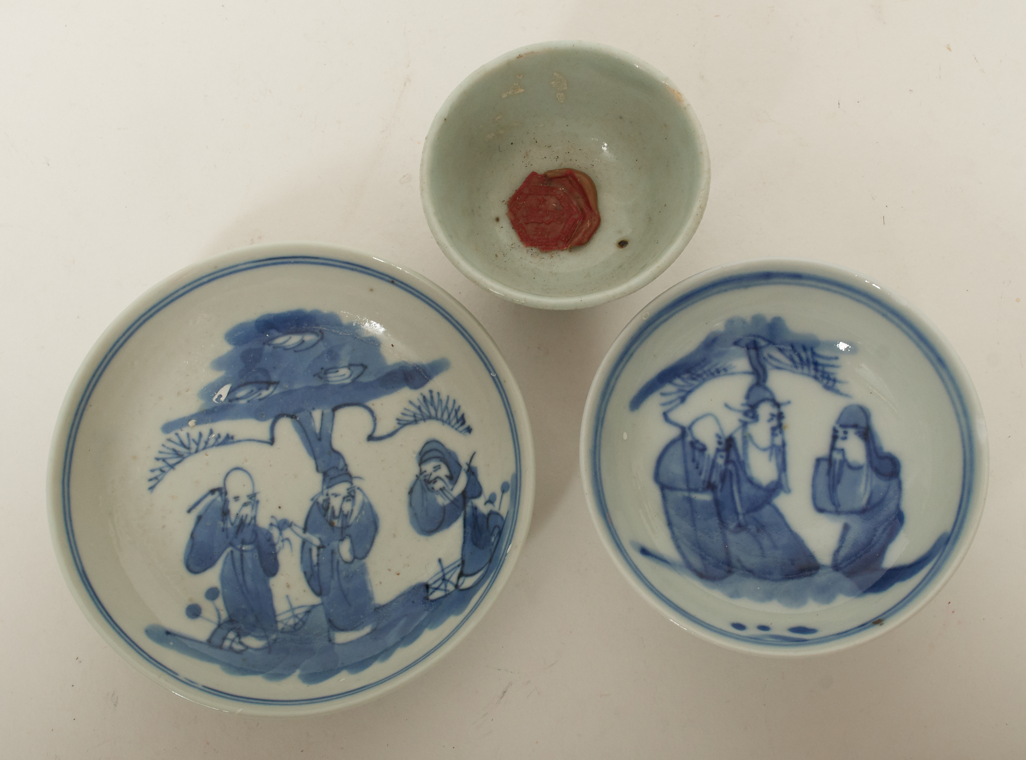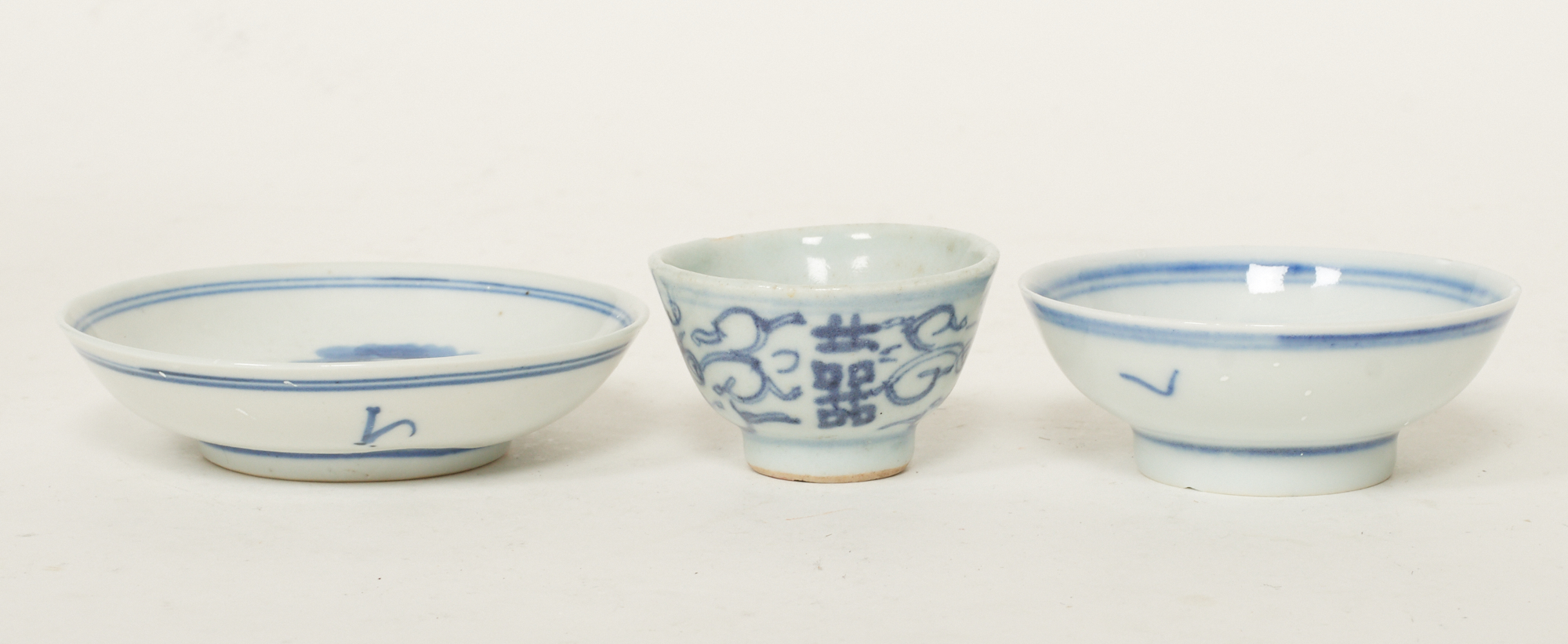 199. Vinkopp, samt 2 fat, 1800-tal, Kina