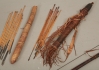 Pilbåge, längd 145 cm, 2 st koger, 16 st pilar. Slitage.