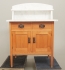 Med skiva i marmor, 2 utdragslådor, samt dörrpar med bakomliggande förvaring, 75 x 50 cm, högsta höjd 103 cm. Smärre bruksslitage.