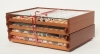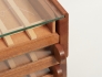 Monter med 4 utdragslådor, skiva, samt lådfront i glas, 51,5 x 38 cm, höjd 22 cm. Bruksslitage, en del till handtag på låda saknas, ett nagg i bakkant på glasskiva.