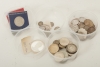 99,9% silverhalt totalvikt 19,8 gram, 92,5% silverhalt totalvikt 56 gram, 80% silverhalt totalvikt 385 gram, 60% silverhalt totalvikt 49 gram, 40% silverhalt totalvikt 255 gram