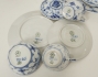 7 koppar med fat, modellnr 719, samt assietter, modellnr 574, gräddkanna, sockerskål, samt en extra kjopp med fat. I:a sortering, smärre bruksslitage.