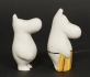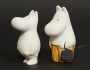 2 st, gipsmaterial, ej glaserade, signerade LJ, höjd 9 - 9,5 cm, smärre bruksslitage. Vikt Mumintroll 124,7 gram, vikt Muminmamma 161 gram.