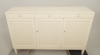 Bodafors, bemålat trä,3 dörrar med bakomvarande hyllplan, samt 3 utdragslådor, längd 150, bredd 38,5, höjd 96 cm. Brännmärkt, bruksslitage.