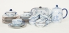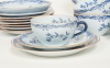 11 tekoppar med fat, samt assiett, tekanna, sockerskål, gräddkanna, samt mindre bricka. Varierande ålder och modeller, bruksslitage.