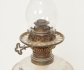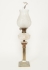 Mässing, samt glas, höjd 75 cm till brännrör, bruksslitage