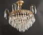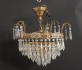 Mindre kristallkrona, 5 elektriska ljuspunkter, diam 30 cm, enstaka prismor saknas.