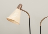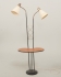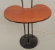 Lampbord, 1900-talets mitt, svartlackerad metall, med bordsskiva i trä, 2 elektriska ljuspunkter. Bruksslitage, ej funktionstestad.