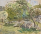 Grönskande landskap, signerad, samt daterad -45, bildmått 38 x 45 cm.