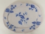 Fajans, tillverkad 1765, dekor med blommor, längd 47 x 37 cm, zinklagad spricka, samt lagning på brätte.