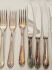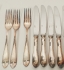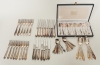 Ca 60 delar, varar 12 st kaffeskedar avvikande modell, tot. vikt 1761 gram, varav knivar med rostfria blad 808 gram