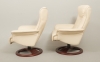 Ett par, läder, med fotpallar, smärre slitage