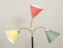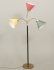 Fot i mässing, samt svartlackerad metall, skärmar i grönt, gult, samt rött. Höjd ca 165 cm, smärre bruksslitage.