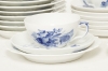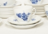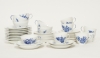 6 kaffekoppar med fat, 6 tekoppar med fat, 11 assietter, samt några extra fat medföljer, smärre bruksslitage. Enstaka del II:a sortering.