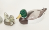 Vråk, Hutschenreuther, höjd 42 cm, avslag på vinge, samt klo, Rosenthal, fågelungar i rede, höjd 8 cm, lagning, samt gräsand efter Billy Hellsten i trä, längd 28 cm