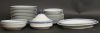 Royal Copenhagen, bestående av 12 mattallrikar diameter 26 cm, 8 förrättstallrikar diameter 22 cm, 4 assietter diameter 19,5 cm, 2 stekfat, samt 3 karotter, varav en med lock, fint skick