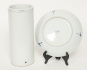 Skålfat 17/1800-tal, dekor i underglasyrblått nagg och ifyllt nagg, penselurna med landskapsdekor, borrat hål för sladd-