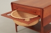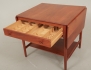 Teak och ek, längd utfälld 118 cm, bredd 57 cm, höjd 60 cm. Brännmärkt, smärre bruksslitage, men fläckar samt mindre repor förekommer.