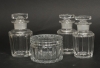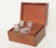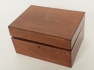 1900-talets första hälft, mahogny med 4 st behållare i glas, 32 x 24, höjd 17 cm, smärre slitage, ingraverad namn på lock, saknar nyckel