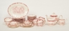 9 kaffekoppar, med fat, samt assiett, 3 tekoppar med fat, samt assiett, tekanna, gräddkanna, sockerskål, samt uppläggningsfat, extra fat medföljer. Bruksslitage, krackeleringar, nagg kan förekomma.