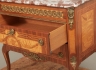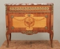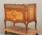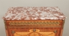 1900-tal, intarsiadekor och beslag i mässing, marmorskiva, 3 utdragslådor.