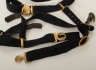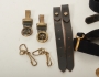 2 st militärbälten med hyskor, läderhänge, spännhake m.m.