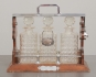 Mahogny, hållare för 3 st flaskor, bredd 39 cm, bruksslitage, en flaska med nagg, saknar nyckel.