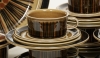 Gunvor Olin-Grönqvist, 6 koppar med fat, samt assiett, tekanna, 6 äggkoppar, sockerskål, samt uppläggningsfat, smärre bruksslitage.